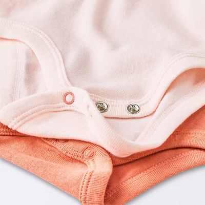 Keep your baby cozy in refreshing style with these 4-Pack Long-Sleeve Bodysuits from cloud island™. This baby bodysuit set includes two solid colors, one in orange and one in light pink, plus two with floral print for cute dressing options each day. Made with 100% cotton in a single-layered construction, this long-sleeve bodysuit set offers soft and breathable comfort. Best of all, the lap shoulders and crotch snaps make dressing and diaper changes a breeze.