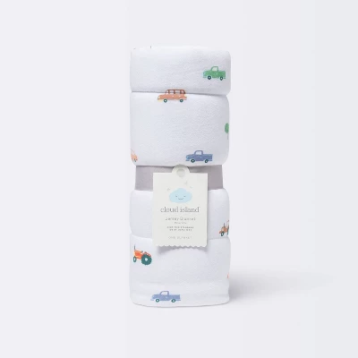 Cute and colorful, the Jersey-Knit Reversible Blanket from cloud island™ is perfect for keeping your little one snuggled up, or for use as a soft, comfortable spot to lay on. This baby blanket features a multicolor truck print on a white background on one side, and a white striped pattern on a green background on the other, giving you a charming two-in-one design. Made from 100% cotton, this jersey blanket feels soft against their skin and offers cozy comfort, and is machine washable to make cleaning and maintenance a breeze. Whether you lay it down for tummy time or use it while nursing, the jersey blanket is sure to help keep your little one warm and comfy.